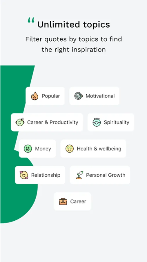 + Filter your quotes by categories. There are many motivational categories in the app.