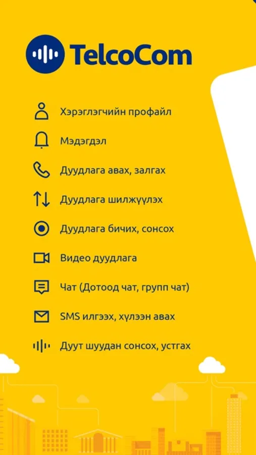 Телко Коннект аппликэйшн таны бизнесийн харилцаа холбоог бүрэн шийдэх дараах боломжуудыг олгож байна. Үүнд: