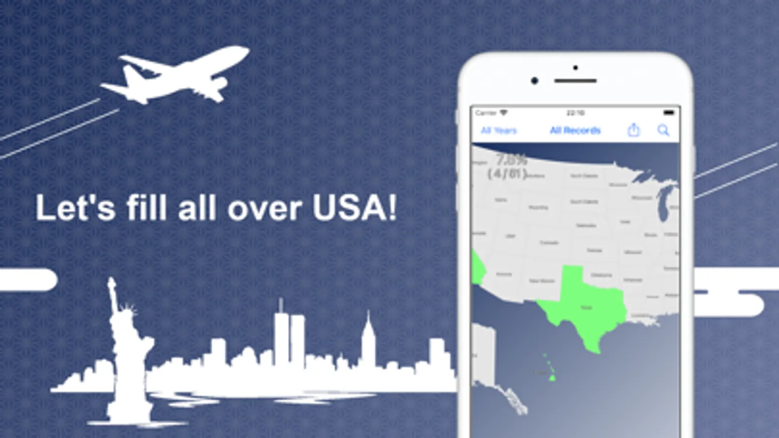 Easy to get started with 'AutoFill' function. It reads all iOS photos and register records by year and region. Let's start 'Fillmap-US’ by this function!