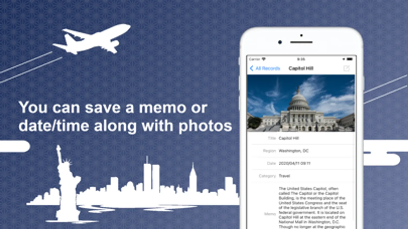 Automatically set the date and location information of the photo in the record! You can also register from the 'Photos' app on iOS.