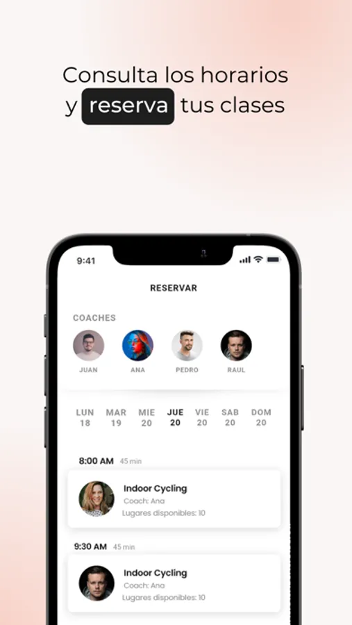 Conoce los horarios de tu estudio, reserva y compra fácilmente desde la app.