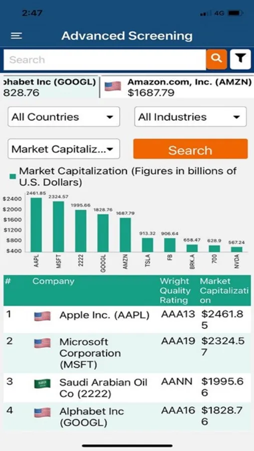 The company research reports contained in Corporate Information App are produced on over 46,000 companies from 85 countries. Wright Investors’ Service has researched and analysed company information since the inception of the firm in 1960. Wright’s analysis tools, developed over several decades, include the proprietary Wright Quality Rating® that is applied to each company contained on Corporate Information. The CI App service is one of the most comprehensive sources for financial data on publicly traded companies worldwide.