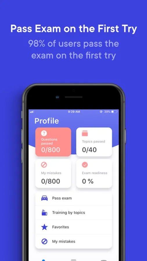 - The application has a "Favorites" section, where questions are added to which an incorrect answer was given