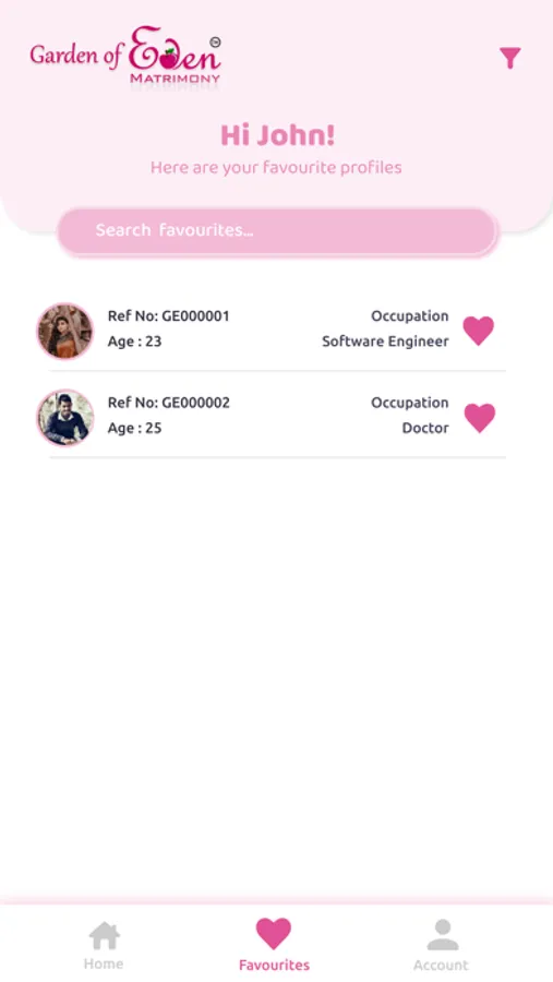 Filter and search the interested profiles and save them in the favorites.
