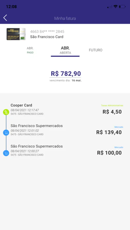 - Extrato detalhado contendo data, horário, tipo de estabelecimento, loja e valor das movimentações