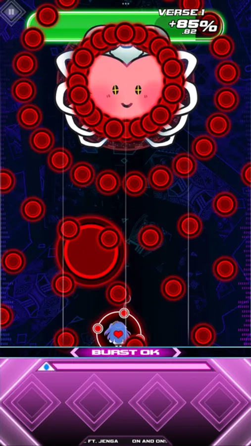 • Rhythm bullet hell gameplay unlike anything you've played: freely move in 2D to dodge bullets while hitting notes