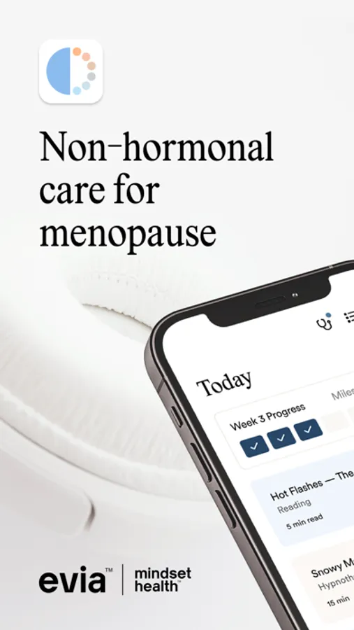 Evia is a self-management tool intended to help people live well with hot flashes during medically diagnosed menopause. It should not replace any medical or professional care, diagnosis, or treatment. Evia is not intended as a treatment for hot flashes and does not replace care by your provider and menopause treatments you may be using. Evia is not a substitute for any medications. You should continue to take your medications as directed by your healthcare provider.