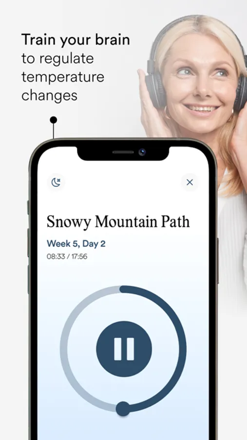 By combining cooling mental imagery, relaxation techniques, and evidenced-based hypnosis, Evia helps you learn to manage your hot flashes by giving you the tools you need to self-regulate how your brain perceives temperature changes during menopause.