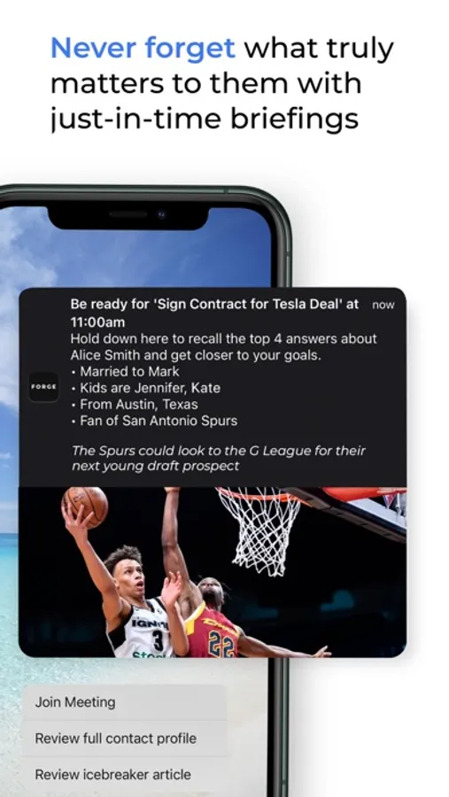 “Forge is a mindset coach; it ensures I practice the right behaviors when it comes to building relationships with my clients. By recalling what's important to them at the right time, I'm able to connect more deeply than I was doing so before.”