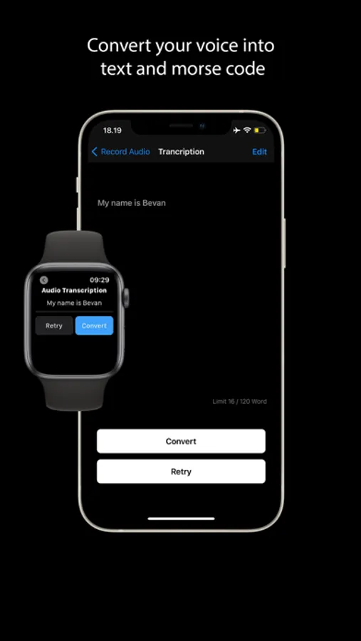- You can record your voice from your Apple Watch or your iPhone and convert your voice into text and morse code in your iPhone.