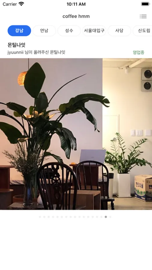- 테이크아웃 전문점, 프랜차이즈 카페를 제외하고 개인 카페로 운영되는 곳을 소개합니다.