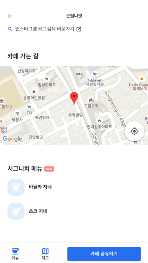 - 카페 사진, 위치, 메뉴 정보, 카페 영업 상태 등을 바로 확인하세요!