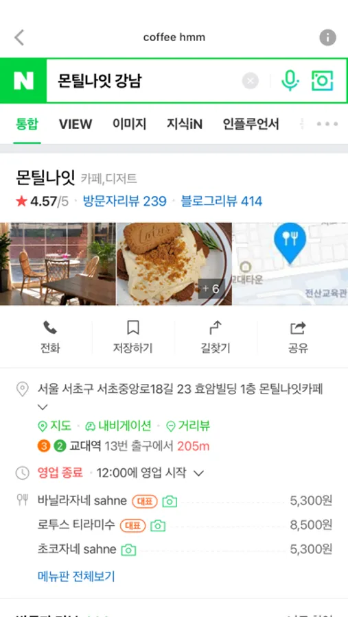 - 커피흠에서 해당 카페의 SNS 검색 결과, 통합 검색 결과를 보여줍니다. 앱 간 이동없이 보다 편하게 확인하세요!