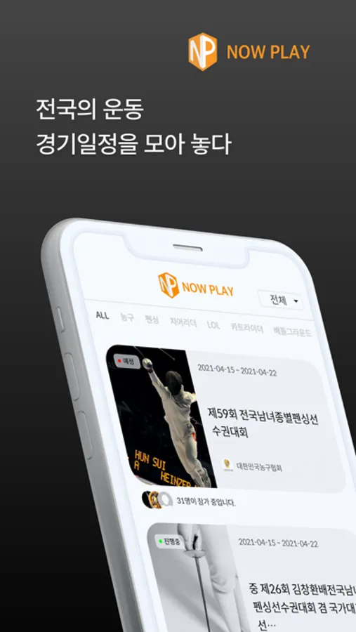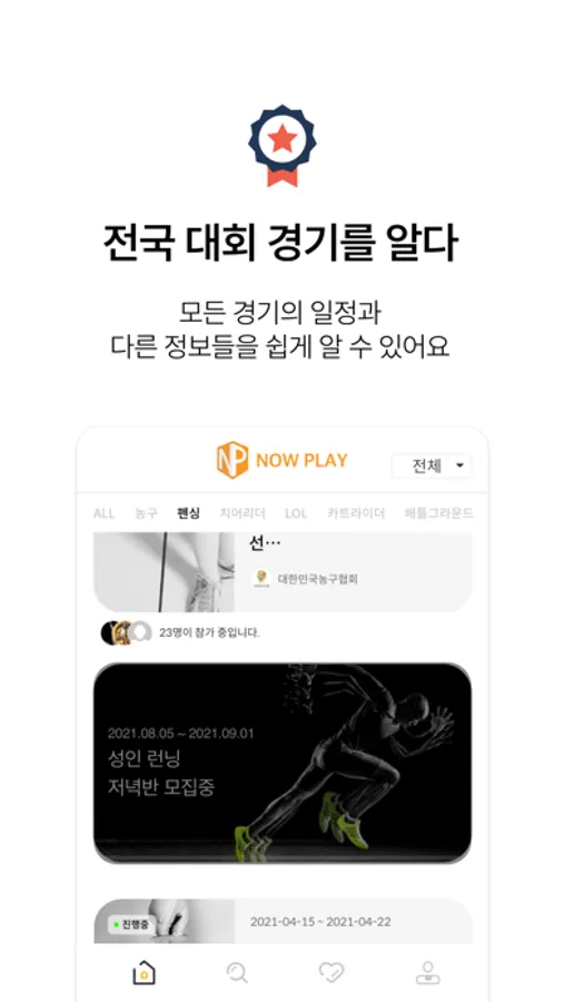 - 전국 스포츠 대회 일정 및 참가를 할 수 있습니다.
