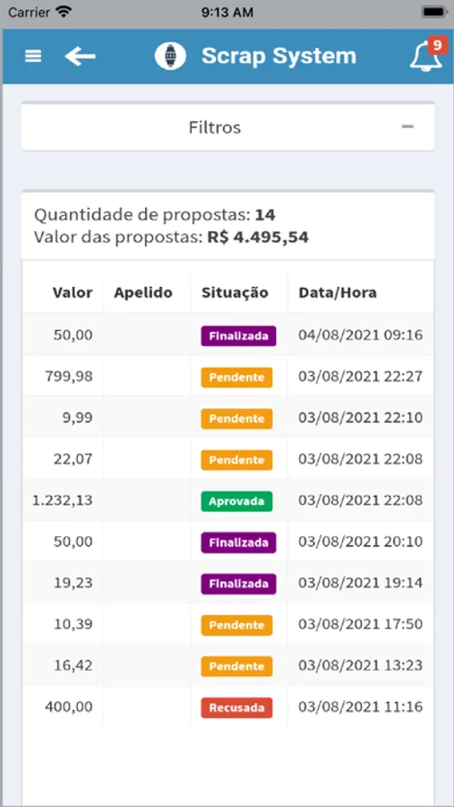 Lançamento do aplicativo Scrap System, para o cadastramento e acompanhamento de propostas pelos usuários e representantes da Euro Parts.