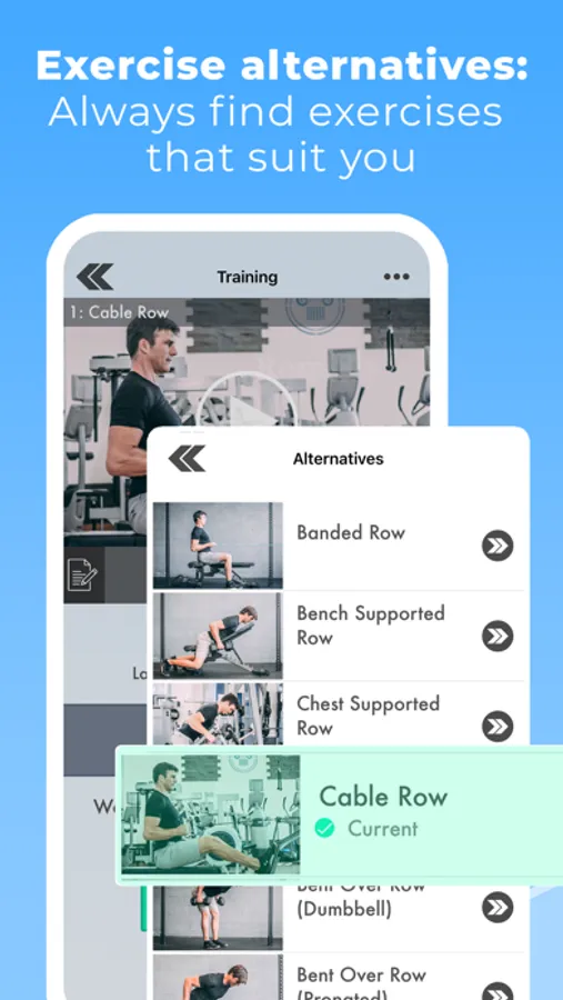 Can’t do an exercise? Always find exercises that suit you, your fitness level and equipment with exercise alternatives that are a perfect match for the exercise you need to replace.