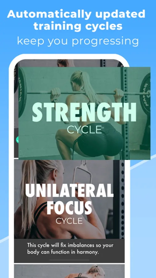 Input your weights and get recommendations on when and how much to increase them. As you advance, your training will update to include more challenging exercise progressions.