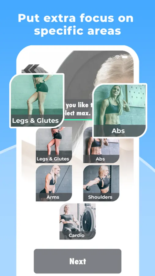Choose areas you want to put extra emphasis on with weekly updated exercises.