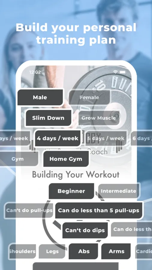 Get your personalized workout plan that fits your goal and fitness level. Configure key elements like gender, training days per week, experience and much more to get a training plan that is truly yours.