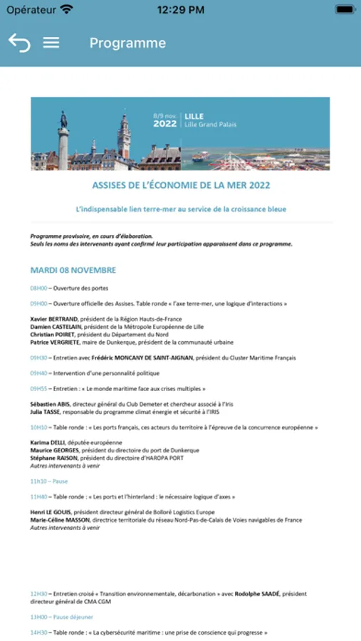 Ceci est l'application officielle des Assises de l'économie de la mer 2022 avec les différentes fonctionnalité : fil d'actualités, informations pratiques, liste de participants, programmation etc...