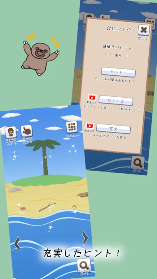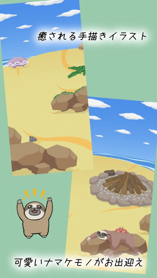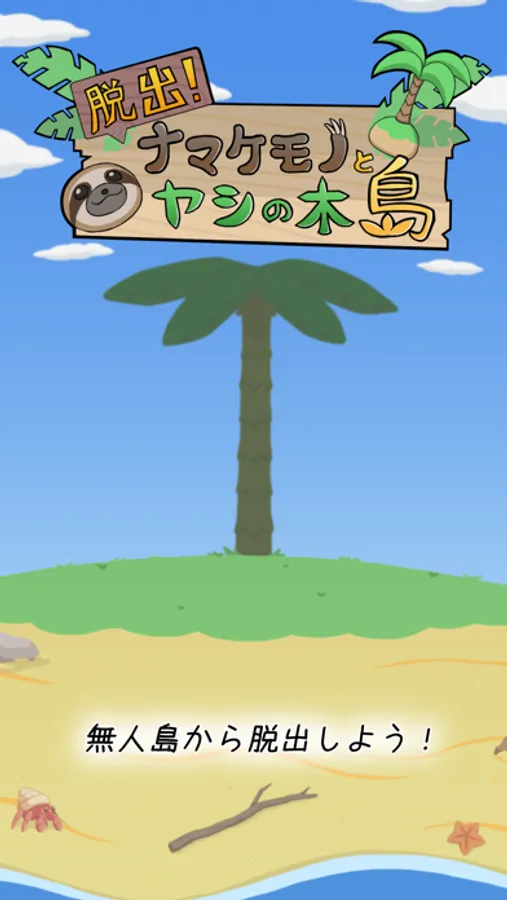 可愛いナマケモノが登場する、小さな無人島を舞台にした脱出ゲームです。