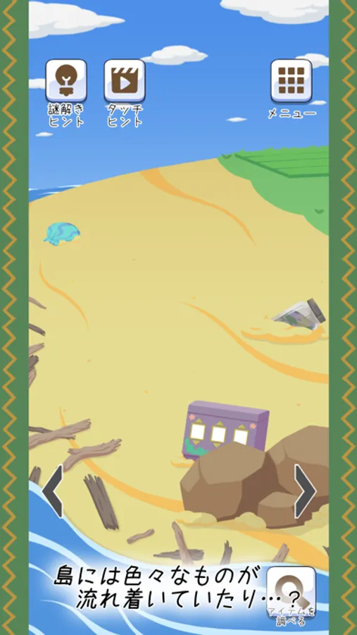 島を探索して謎を解いたり、アイテムを使ったりして無人島から脱出しましょう。