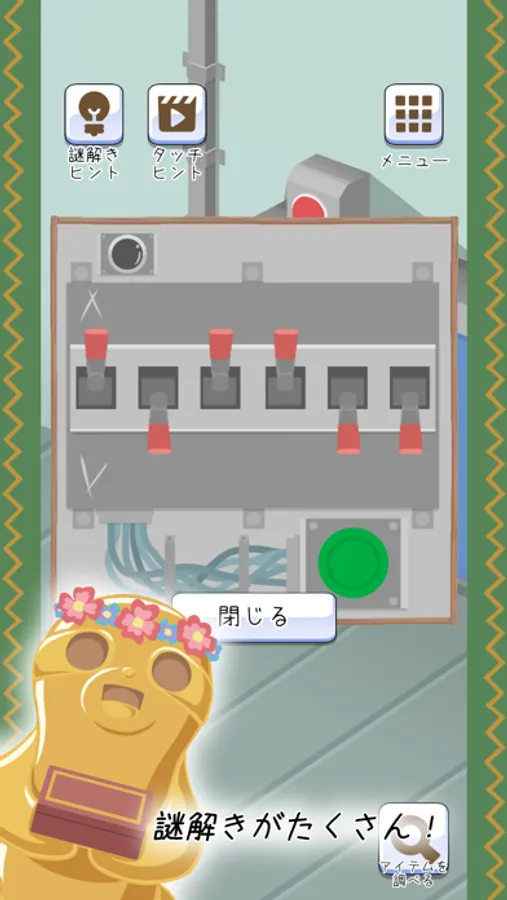 謎解きのヒントと調べる場所のヒントがあるので、脱出ゲーム初心者も安心して最後まで遊べる!