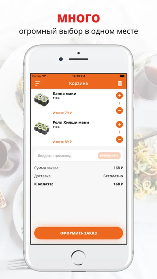 Скачивайте наше приложение, оформляйте заказ и наслаждайтесь любимой едой, где бы Вы ни были! Приятного аппетита!