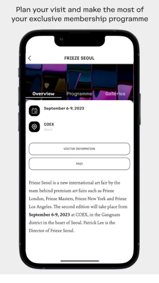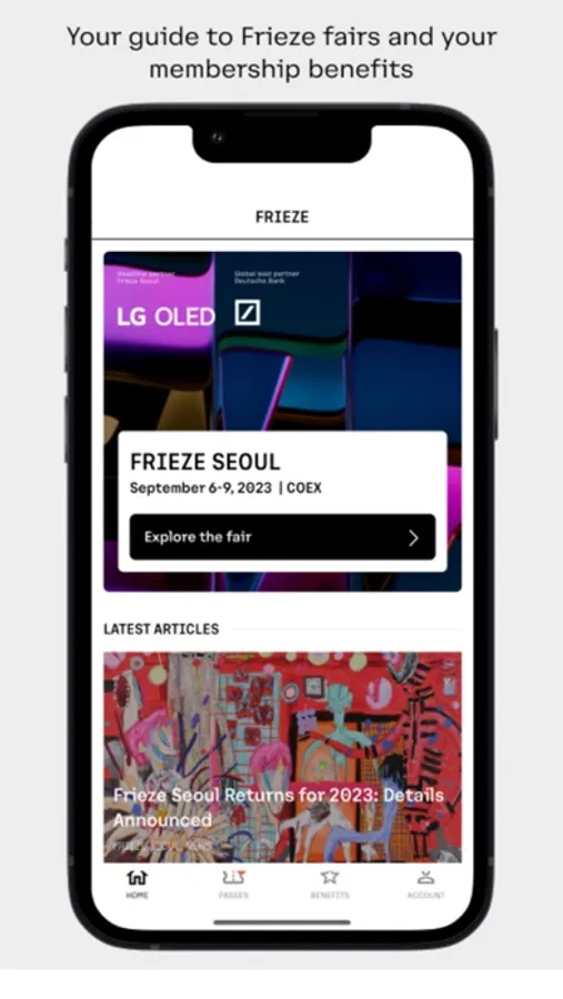 This is the official Frieze app for members and invited guests. Easily access your VIP pass to attend Frieze international art fairs in London, New York, Los Angeles and Seoul – and take part in a year-round programme of members-only events.