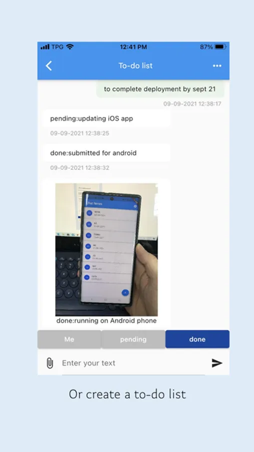 You can use this app to take notes, minutes, diary, to-do, random sightings etc. It is all up to you. You can even add new images and links to the chat!