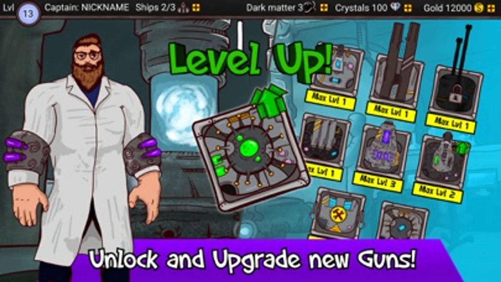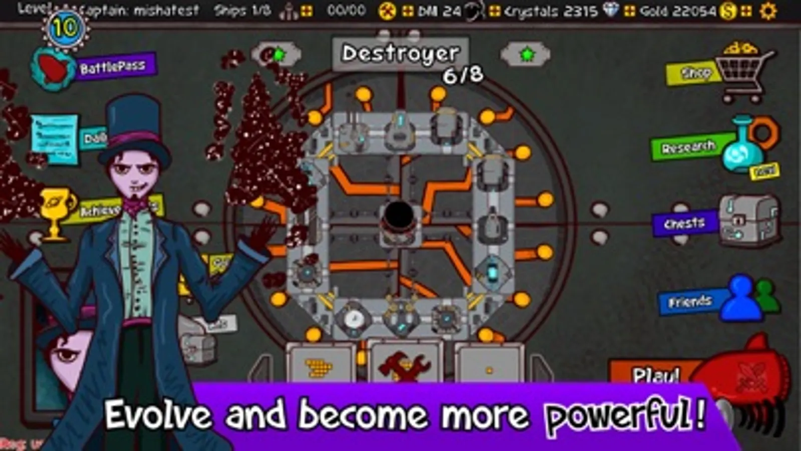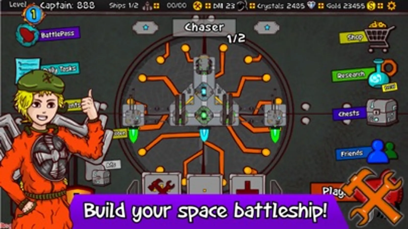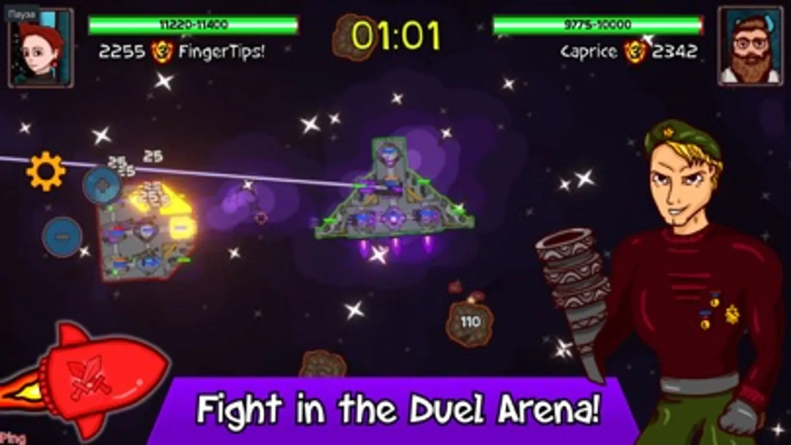 Build your powerful space battleship, equip it with weapons, armor, generators and smash your enemies on battle arena! The cool PvP duel battles are waiting!