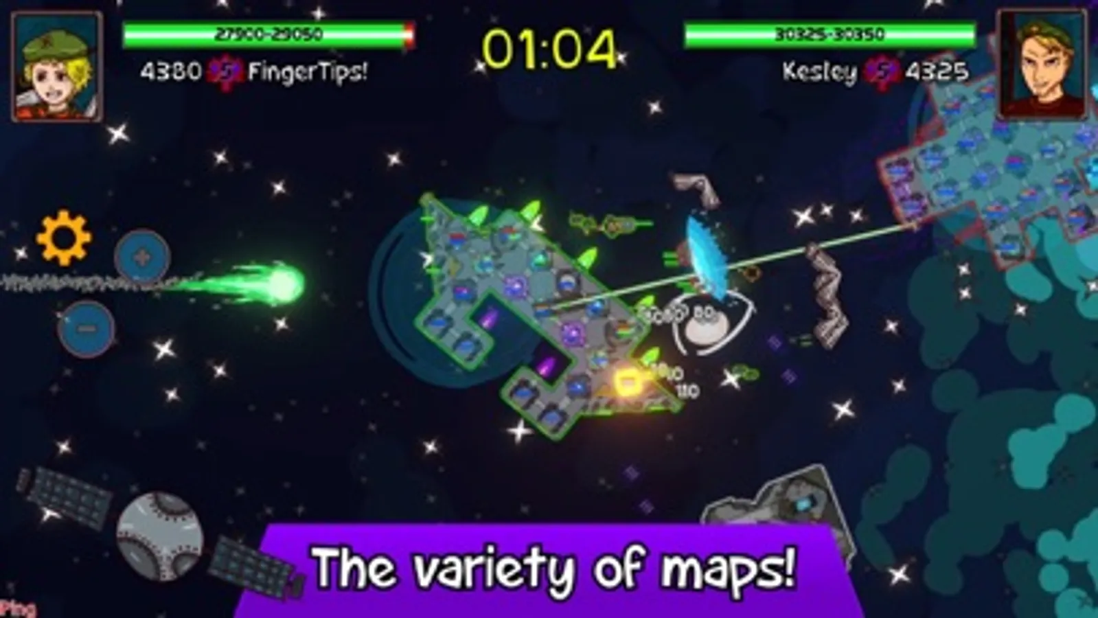 14 maps for battles, 35 types of weapons, blocks and devices! Unlock new technologies, build the battleship you want and fly into battle! Call your friend and fight in PvP arena together!