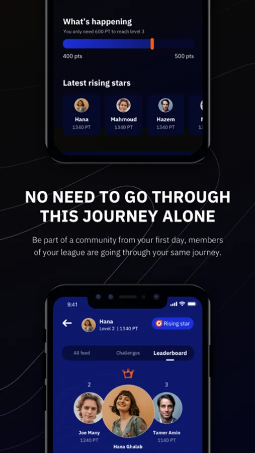 - Gamified Community: From your very first day Amplify adds you to a league with similar goals and needs. Leagues are given daily challenges to gain points and advance to higher leagues. You will be able to challenge yourself and/or other members in the same league for additional points.