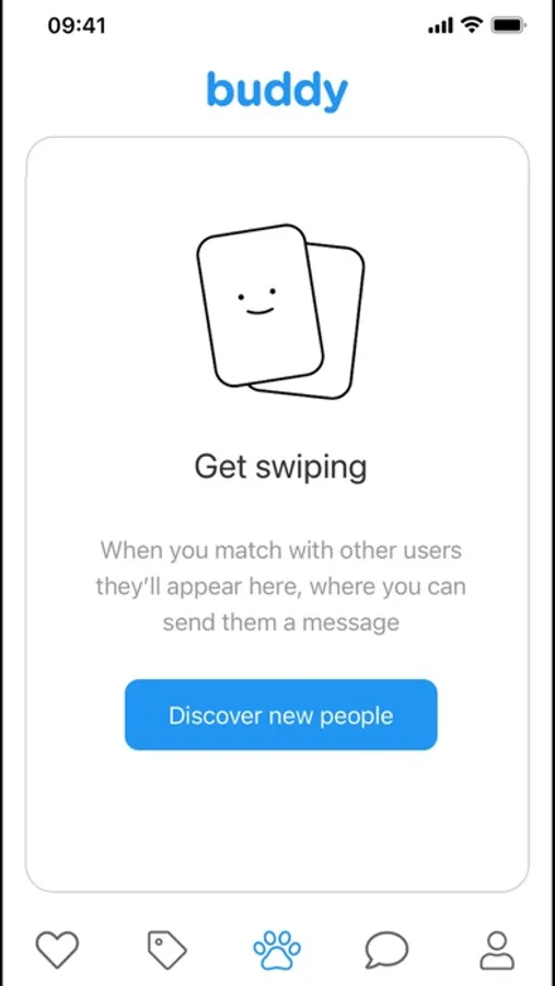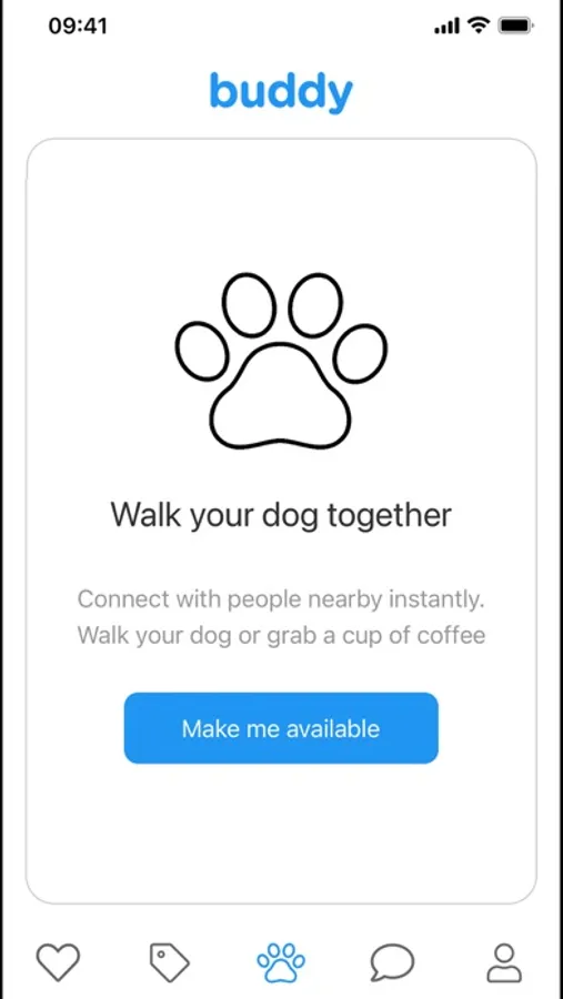 Buddy is an app for dog lovers that wants to meet new people nearby. Dog ownership is not a requirement.
