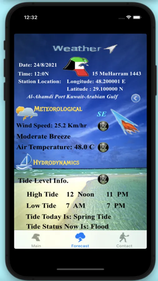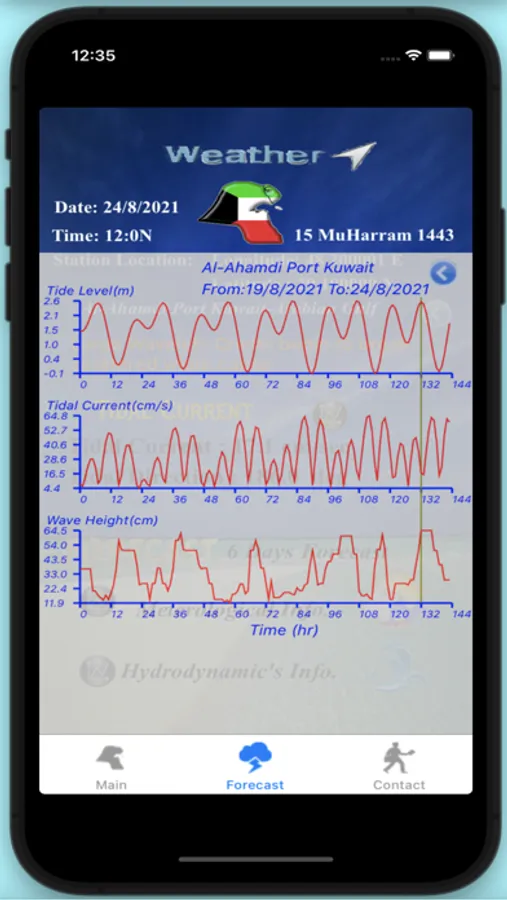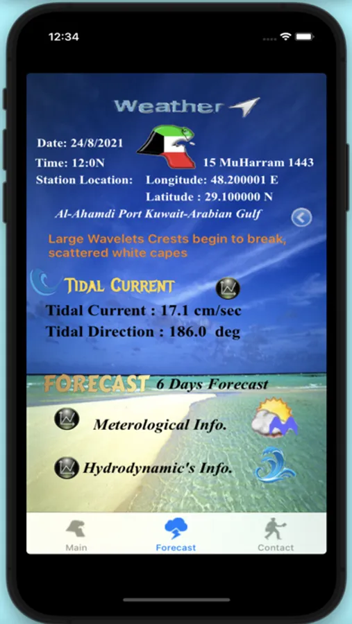 KForcs APPs, Produces hydrodynamics’ forecasts for Kuwait Weather and Sea condition , which help the public make decisions about day-to-day activities and warn people of extreme weather to mitigate its impacts contributing to the protection of life in sea.