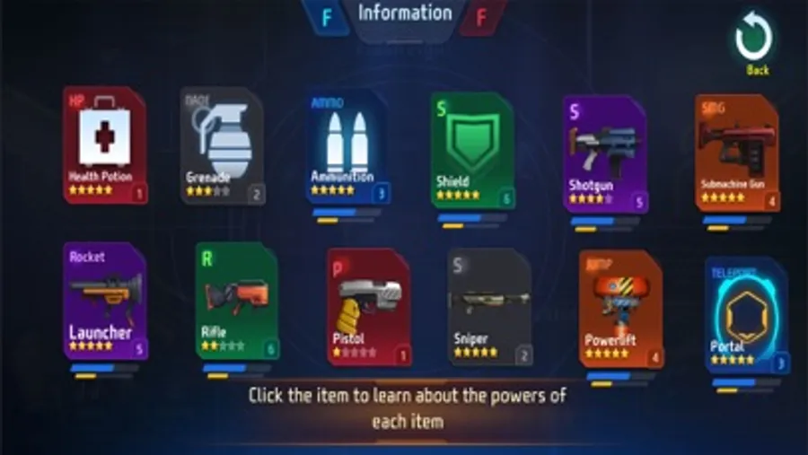 It is time for the fight of our lives. Choose a map and battle against your friends and/or random opponents. Grab the best weapon of your choice. Jump or teleport in the designated power- lift or portal to escape during critical times. Do not forget that you can heal yourself when injured and collect ammunition when you are running out. Most importantly, be careful; friends can become enemies during the match.