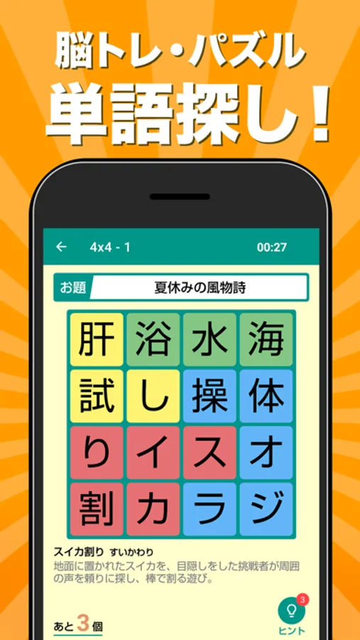 頭の体操・脳トレにピッタリの脳トレ単語さがしゲームが新登場。