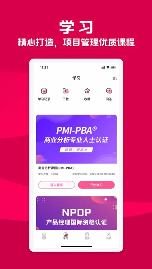 1.视频:汇聚才聚专业教研团队精心打造的优质课程,涵盖PMP®项目管理、NPDP产品管理、PMI-ACP®敏捷项目管理、PMI-PBA®商业分析、SHRM人力资源、软考等资格证书认证考试、落地实战等,通过系统化学习,建立个性化知识体系,提升职场技能应用能力的同时高效获取相应证书。