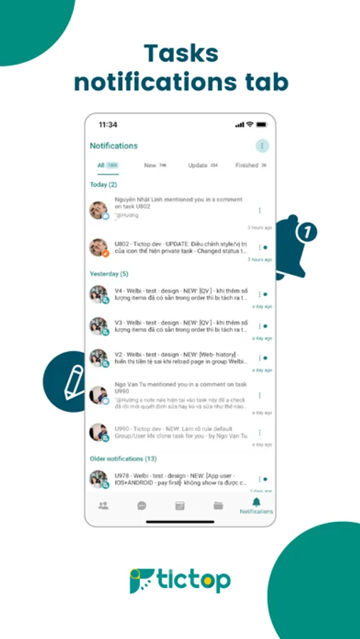 You will have an overview of everyone’s work in the team, everyone can track the work status of each person in the team during the day!!
