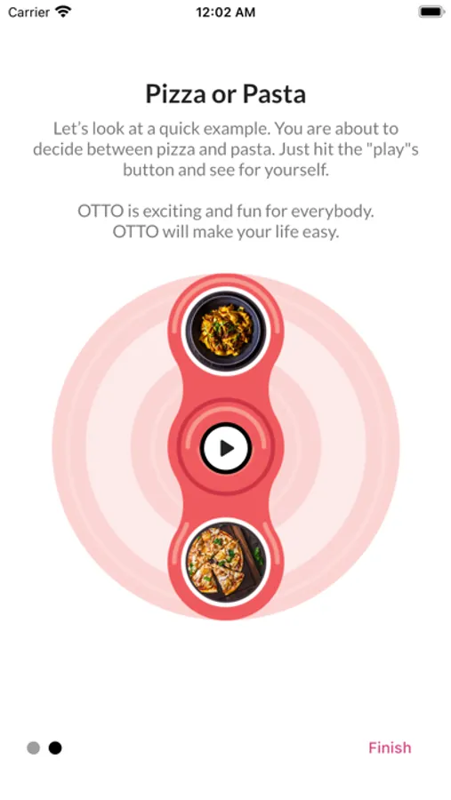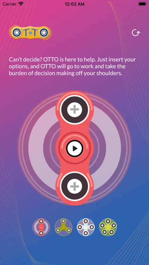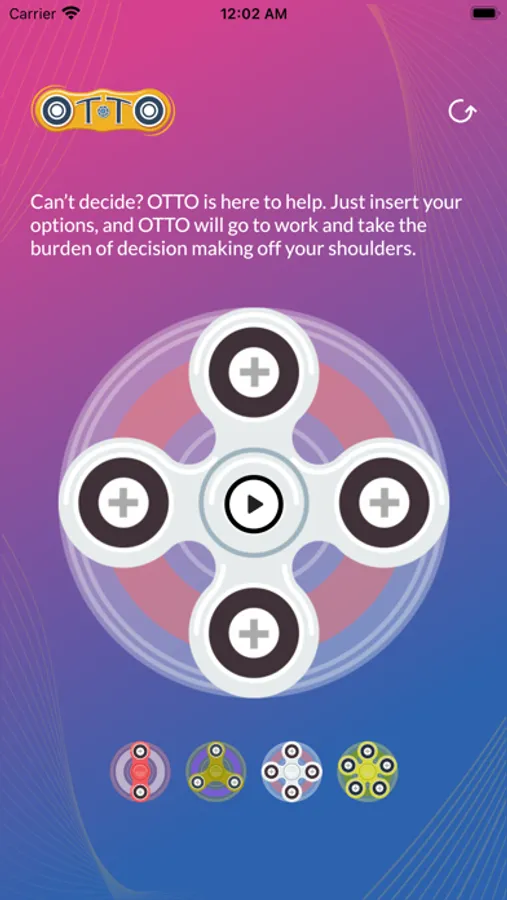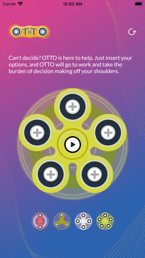 By just inserting your options and starting OTTO you will get a random result. May it be what to eat, where to go, what to wear or a million other small decision, OTTO will help you making up your mind.