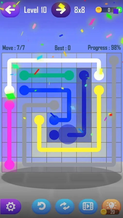 - Pair all colored lines and cover the entire board with lines to solve the puzzle.