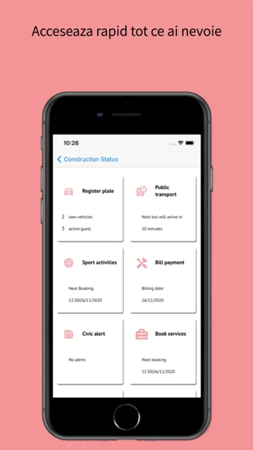 De la posibilitatea de a urmări stadiile construcției pentru propria casă, la posibilitatea de a oferi acces auto în complex, această aplicație unică te ajută să îți rezervi terenurile de sport sau să te bucuri de un chat care te ajută să fii în contact cu vecinii. Vei putea să verifici și calitatea aerului, sau să localizezi mijloacele de transport în comun și pe viitor vei putea să faci plățile pentru utilități printr-un simplu click.