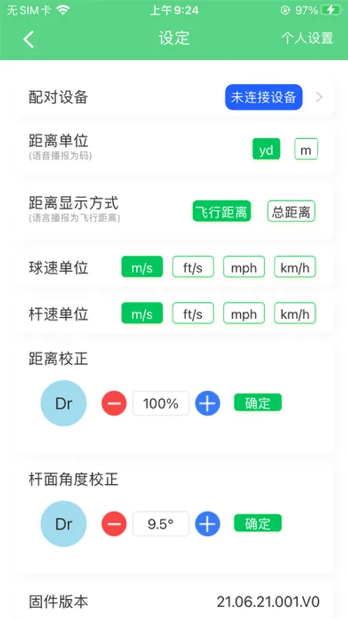 1.需要连接配套蓝牙设备获取高尔夫击球的各类数据;