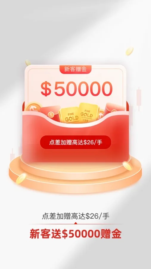 新客最高可领$50000赠金,叠加尊享$26/手点差优惠。