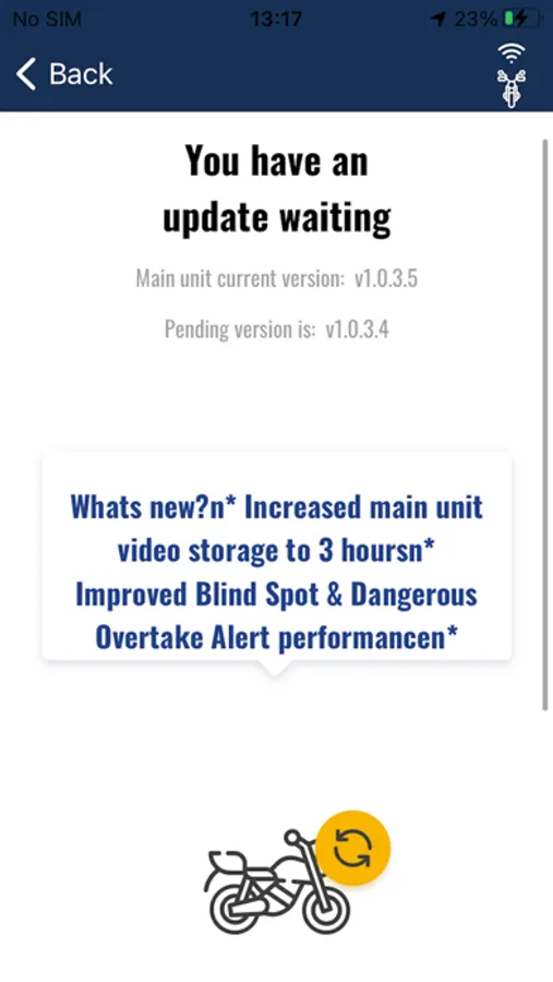 The mobile app lets you connect and activate the Ride Vision unit installed on your vehicle.