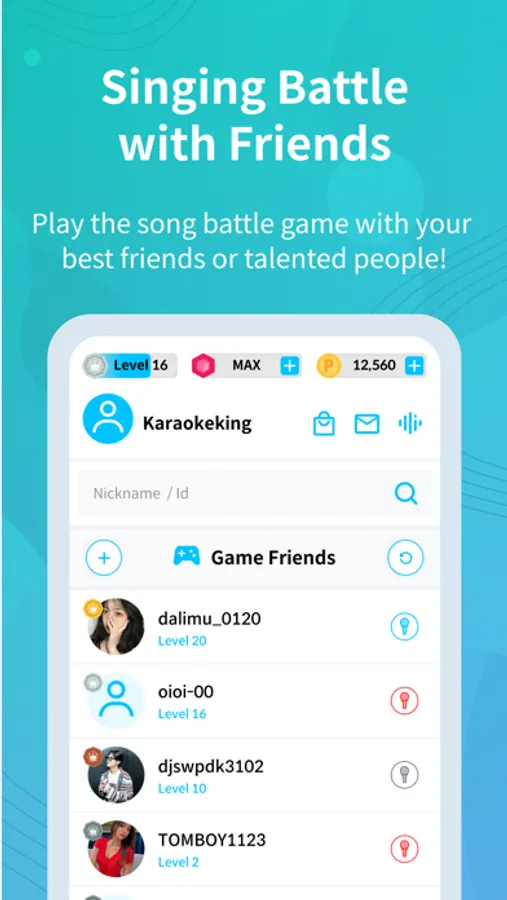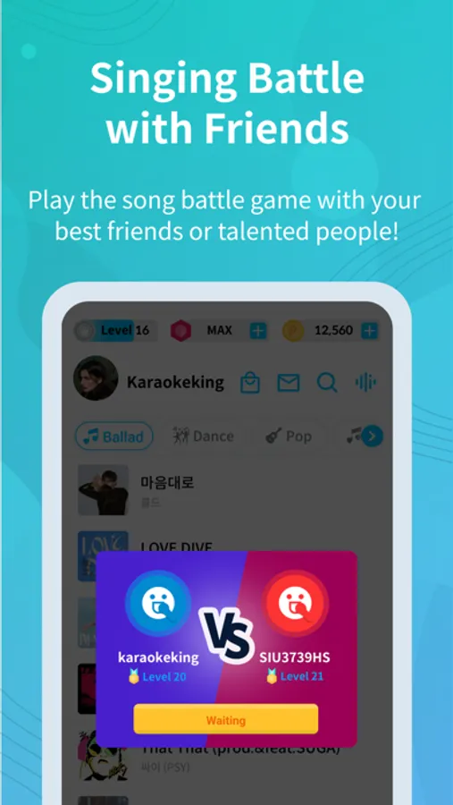 - Let's compete 1:1 with singing! When you win, you accumulate useful points.