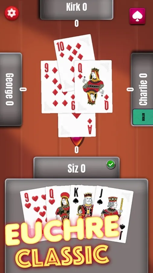 It's widely played in the United States, where it's also known as Bacon, and in other English speaking countries. In Euchre Free you play with 3 other players, forming 2 teams, and the deck in play consists of the 9, 10, J, Q, K, and A cards. There is always a trump and your objective is to score 10 or more points. You get these points in matches with 5 tricks, where the team that scores the most points and tricks wins.