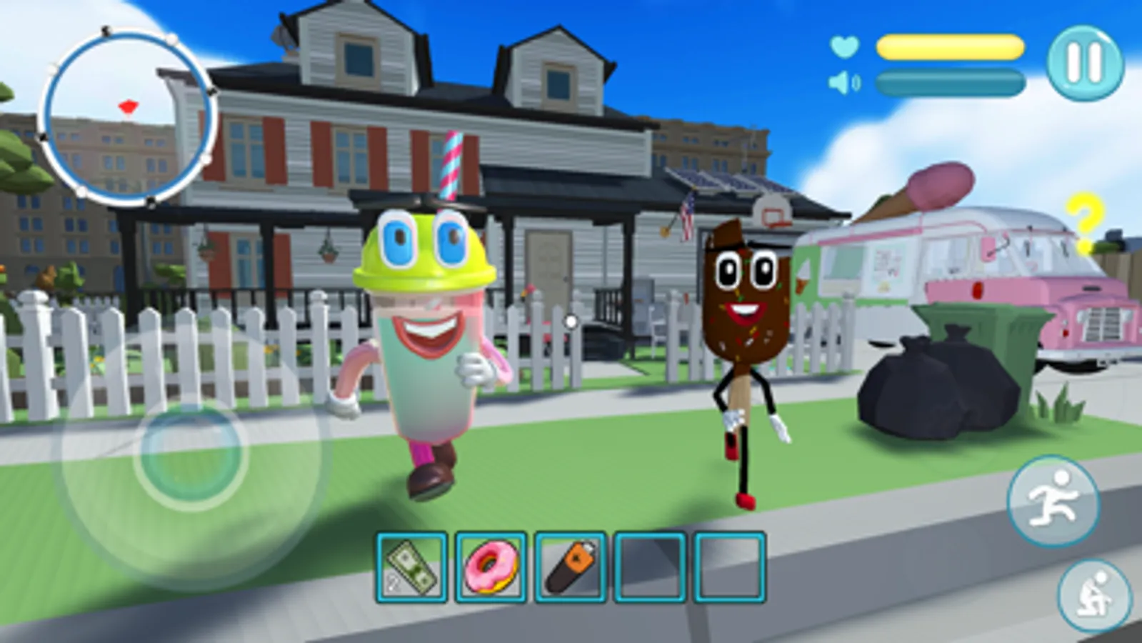 • 5 Different characters! Meet Bob, friend Patrick, scary ice cream, ice shake glass and ice cream seller.
