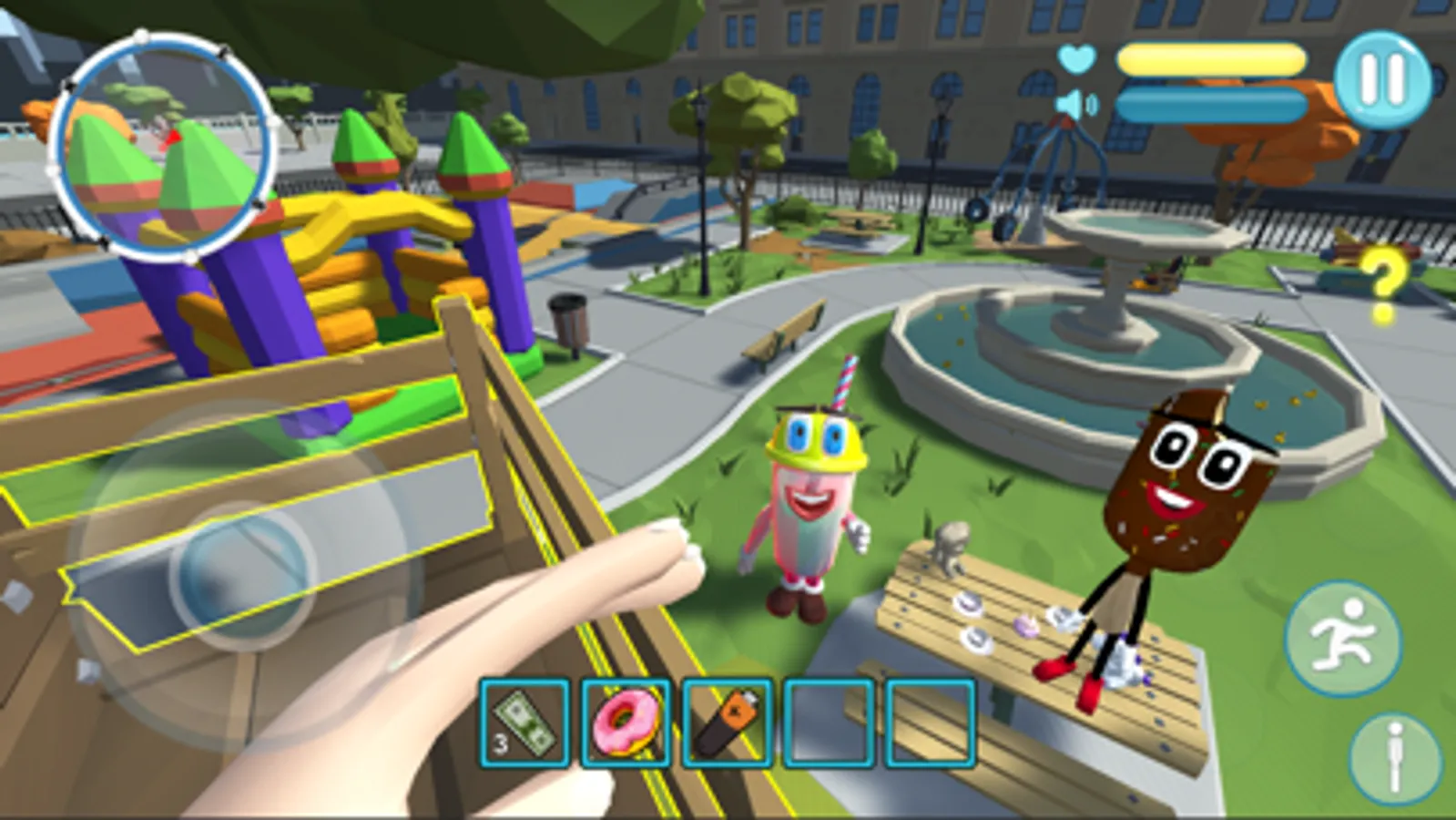 Say hello to 5 characters in this Amazing Adventure Open World game! Meet the dangerous neighbors of the central park: ice cream and shake and a suspicious ice cream seller. Investigate what is happening at this scary city and to find a key to an evil horror secret of the scary five neighbors! Uncover their secret playing for a guy Bob and rescue his friend Patrick. Seek and Explore the huge city location, central park and ice cream's house. Use tram to move around the city or to escape your granny's house!