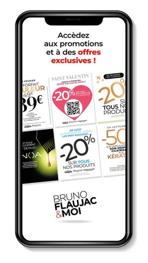 Avec notre application, vous découvrirez : - Les offres exclusives proposées en salon - Le programme de fidélité avec vos points et offres privilèges -Nos forfaits tout inclus et les tarifs étudiant -La collection Bruno Flaujac Coiffures - Les nouveautés produits - Et, grâce à la géolocalisation de nos salons, trouvez le salon le plus proche de chez vous en un clic.